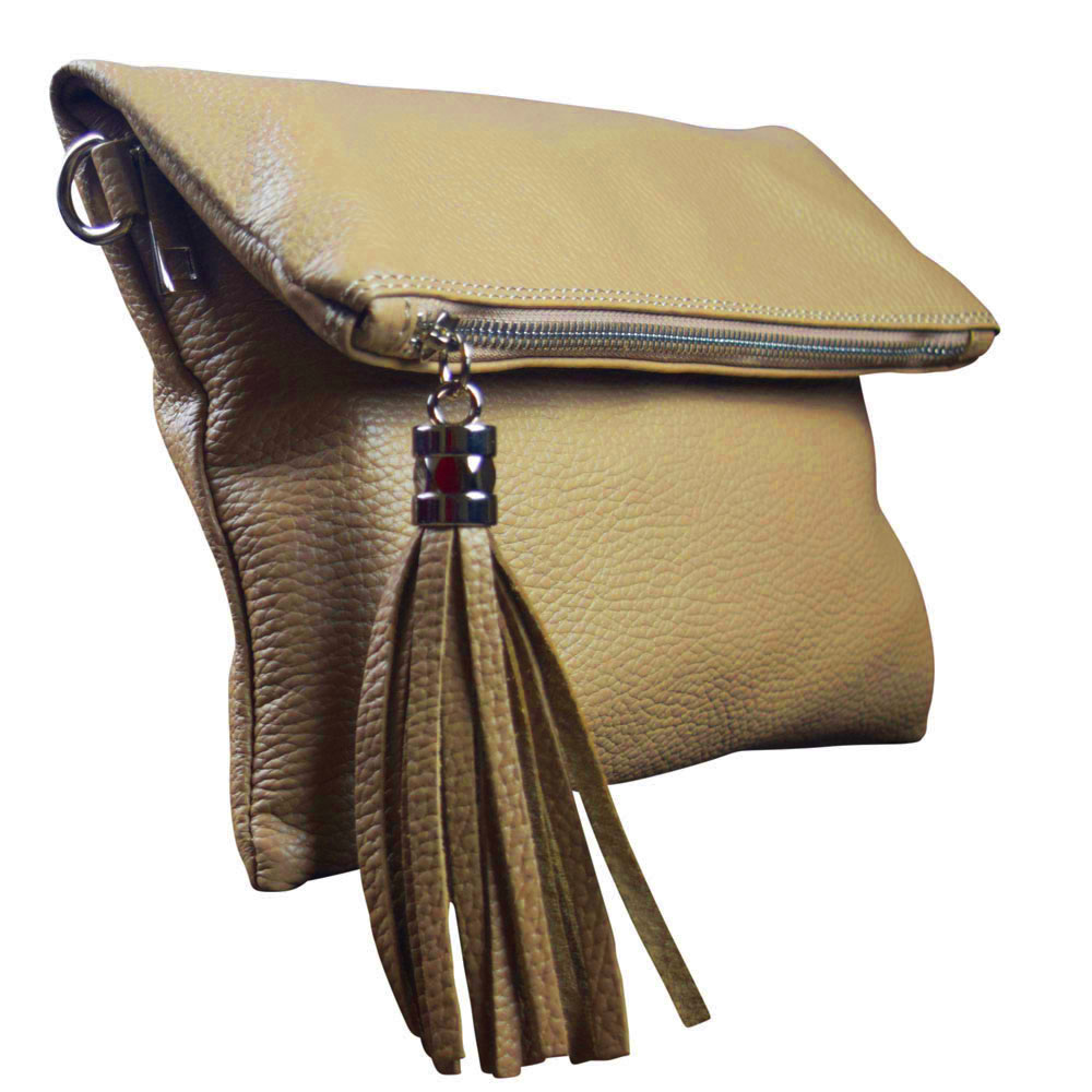 The Erin is a beautiful soft leather tassel clutch. This luxuriously smooth fold-over clutch is generously sized and therefore with its adjustable strap can be converted into a midi shoulder bag in a few clicks. Available in a variety of colours.