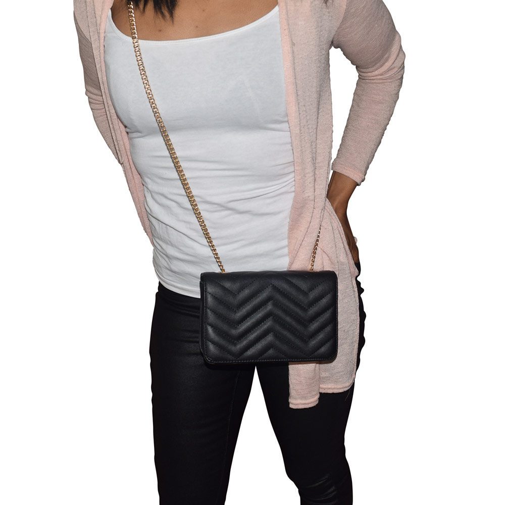This fabulous crossbody clutch bag, can be used to sass up any night time oufit. With its long metallic detachable chain strap this purse-like clutch converts easily into a crossbody bag and its contemporary vegan leather finish ensures the Arena is both unique and effortlessly chic.