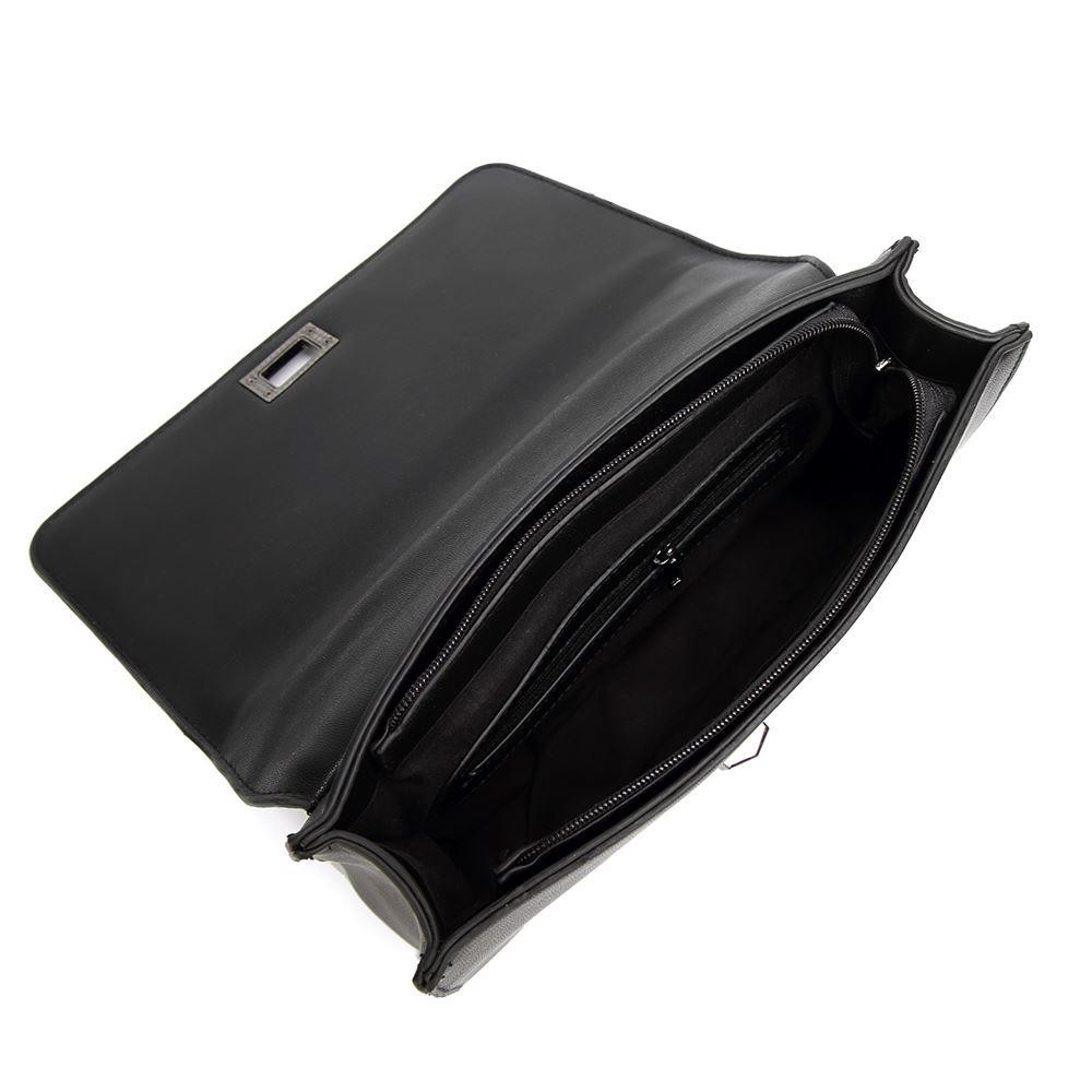 Vegan "faux" leather crossbody bag. Outer: 100% polyurethane. Internal: 100% polyester. Fully lined. Metal trim. Chain shoulder strap. Wipe clean. Width:28cm Height:10cm Depth:9cm.