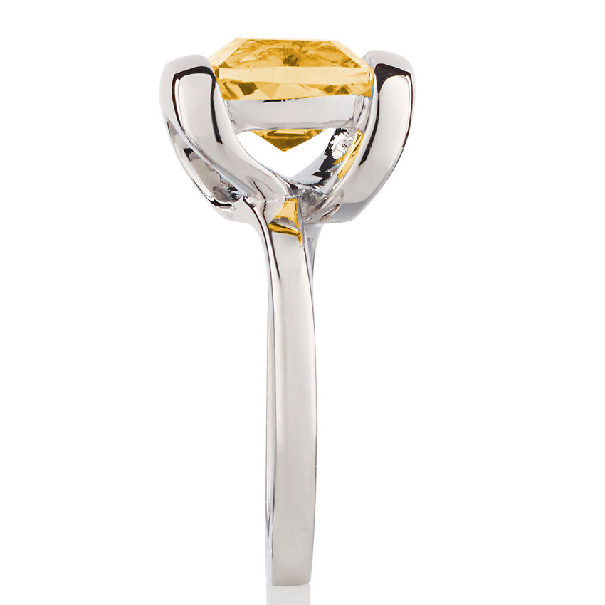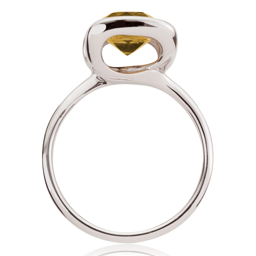 Rhodium plated sterling silver cocktail ring set with 1 x cushion cut citrine gemstone. Lemon quartz setting shown on model in picture. Available in sizes K-Q.