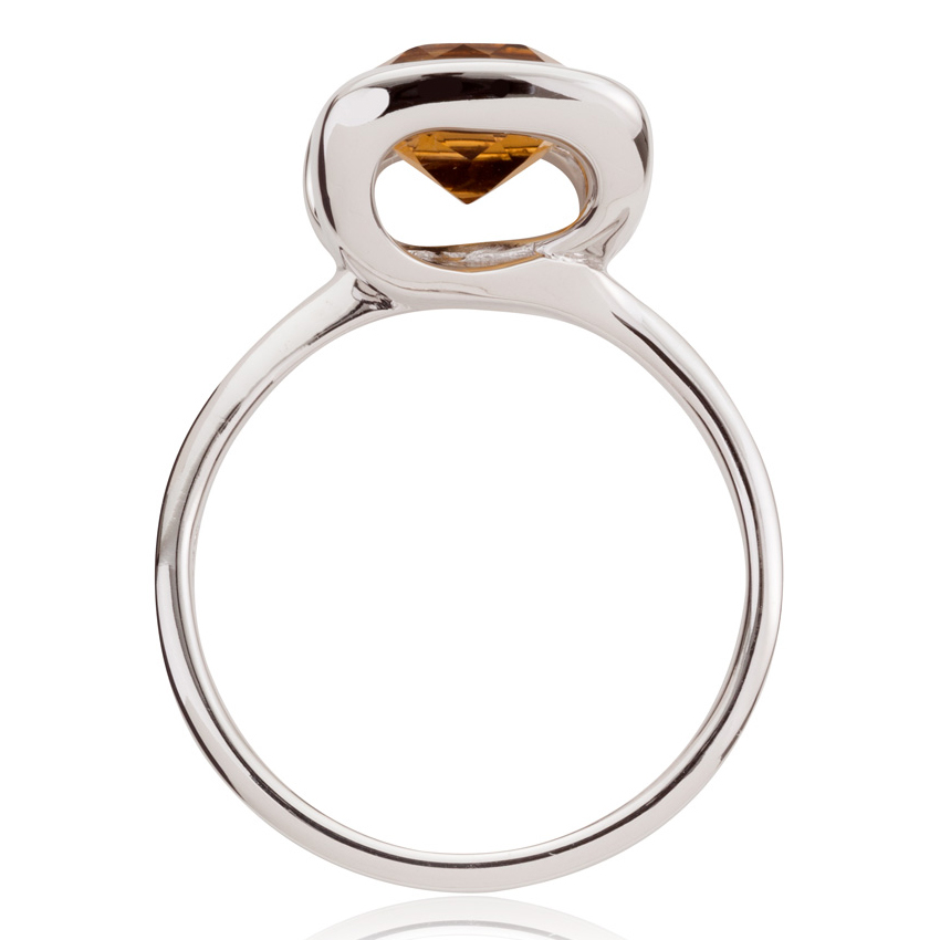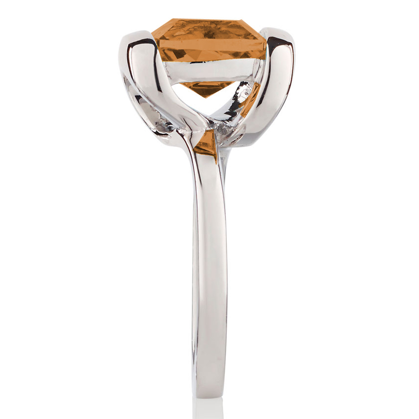 Rhodium plated sterling silver cocktail ring set with 1 x cushion cut cognac quartz gemstone. Lemon quartz setting shown on model in picture. Available in sizes K-Q.